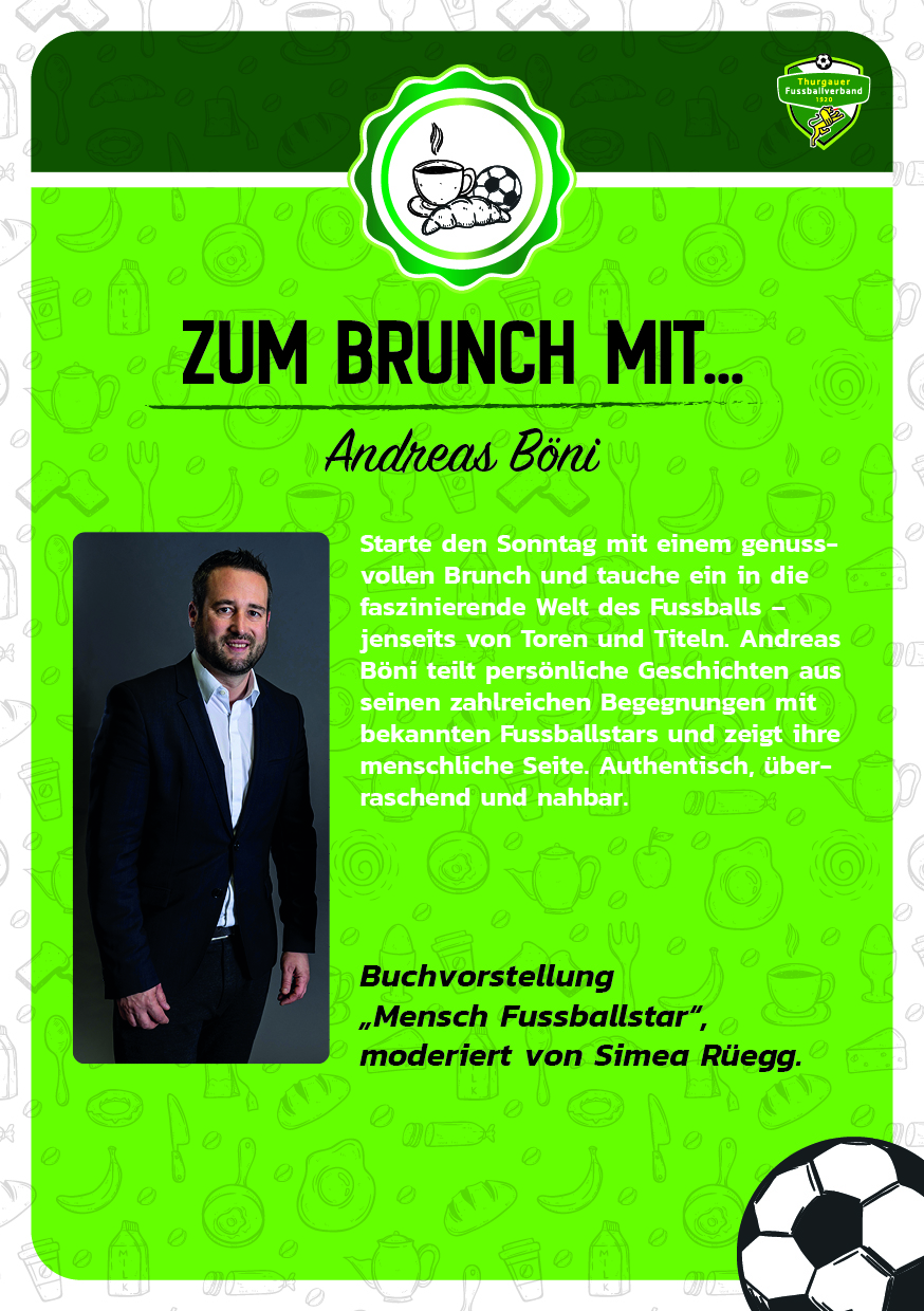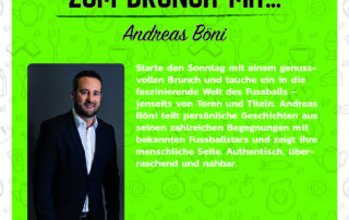 "ZUM BRUNCH MIT…"! Starte den Sonntag genussvoll & entdecke die menschliche Seite des Fussballs Andreas Böni erzählt persönliche Geschichten aus Begegnungen mit Fussballstars «Mensch Fussballstar» Moderation: Simea Rüegg So, 15. [...]