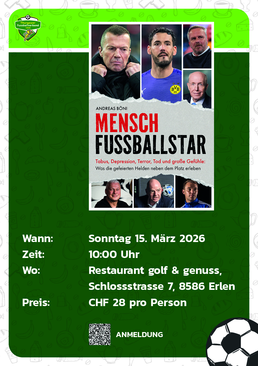 Starte den Sonntag mit einem genussvollen Brunch und tauche ein in die faszinierende Welt des Fussballs – jenseits von Toren und Titeln. Andreas Böni teilt persönliche Geschichten aus seinen zahlreichen Begegnungen mit bekannten Fussballstars und zeigt ihre menschliche Seite. Authentisch, überraschend und nahbar.